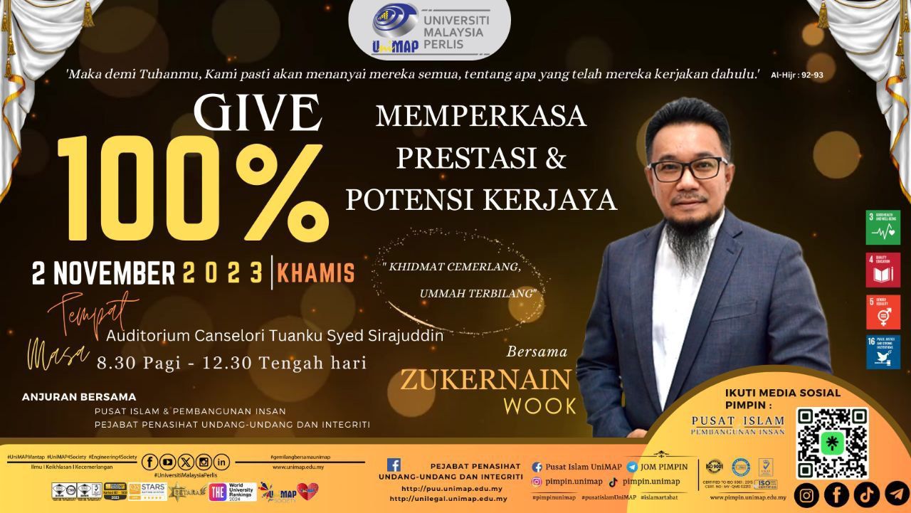 Program Pengukuhan Integriti Sempena Bulan Integriti Kebangsaan Peringkat UniMAP “100% - Memperkasa Prestasi & Potensi Dalam Kerjaya anjuran bersama Pusat Islam UniMAP