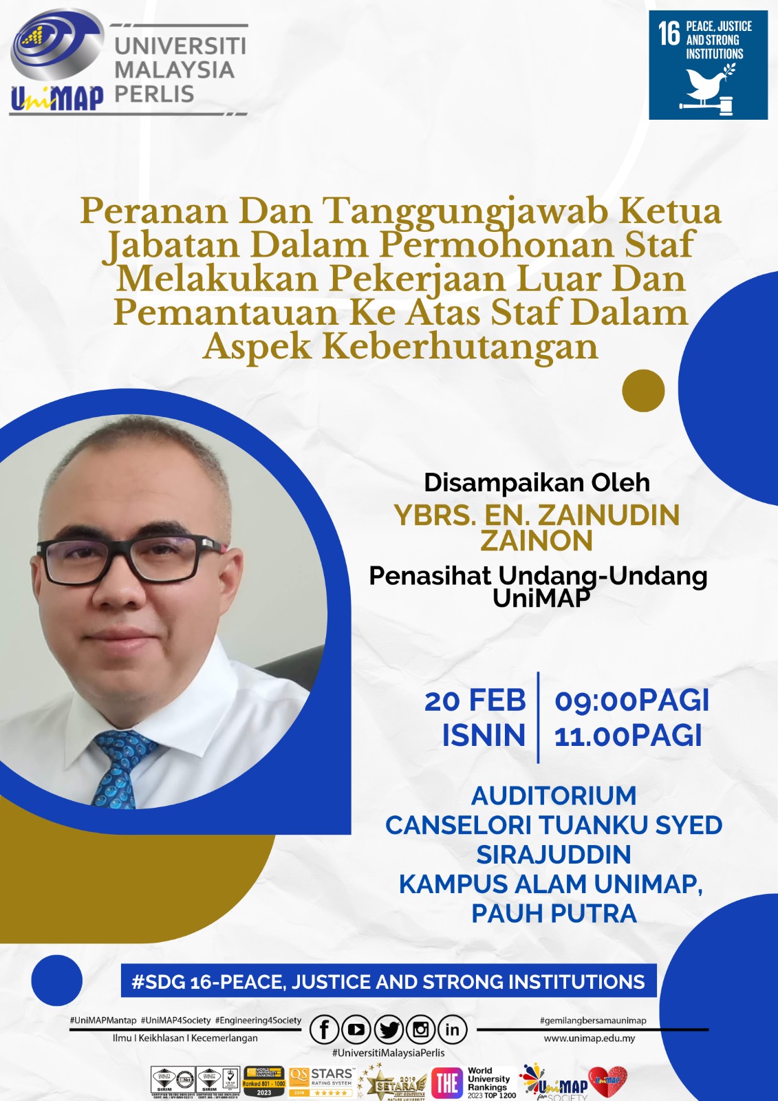 Venue : Auditorium, Canselori Tuanku Syed Sirajuddin