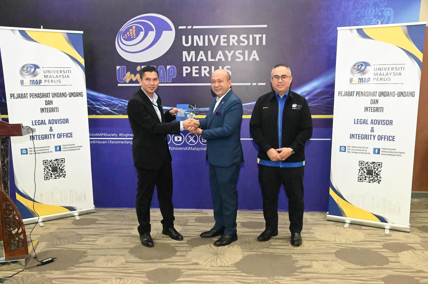 Majlis Peluncuran Buku Pelan Antirasuah Universiti Malaysia Perlis (UniMAP) 2024-2028 dan Lafaz Ikrar Bebas Rasuah (IBR) telah berjaya dilangsungkan di Auditorium Canselori Tuanku Syed Sirajuddin, Kampus Alam UniMAP, Pauh Putra.
