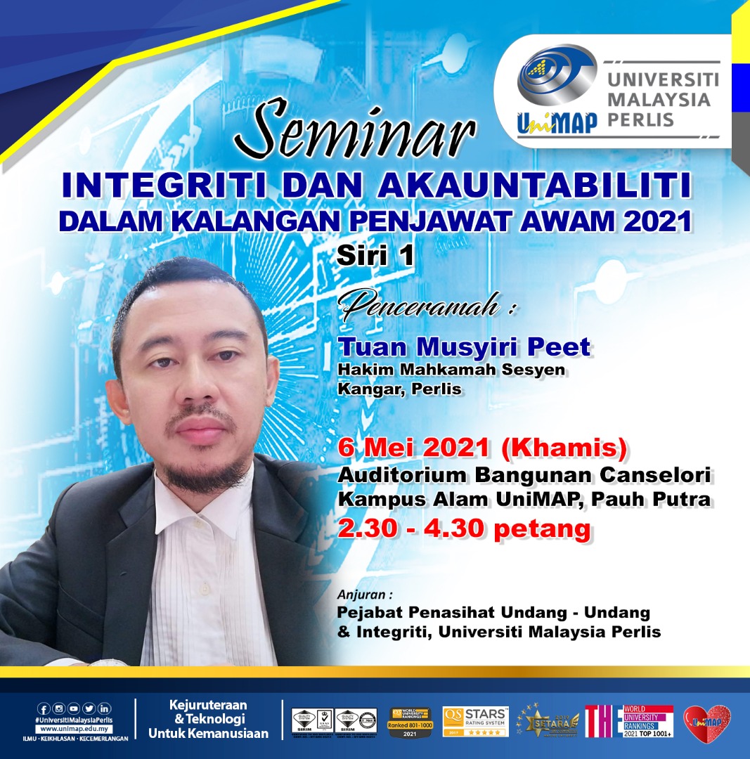 Seminar Integriti Dan Akauntabiliti Dalam Kalangan Penjawat Awam 2021, Siri 1 – Penceramah Jemputan Tuan Musyiri Peet, Hakim Mahkamah Sesyen Kangar, Perlis